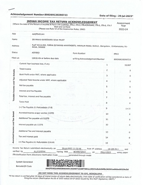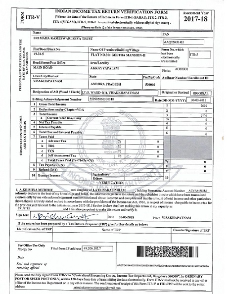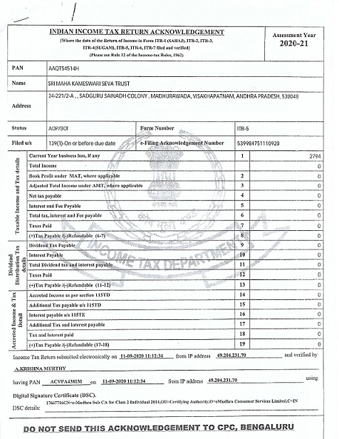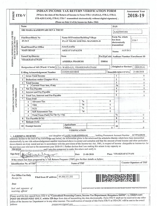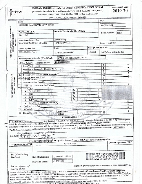ITR receipts & Donors info can be clearly viewed by clicking on the images below