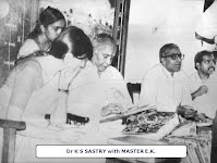 Dr. Sastry garu moved to Visakhapatnam with Indian Railways in 1963. Around that time, his son took sick and he thus approached Sri Kulapathi Ekkirala Krishnamacharya, known as Master E.K garu, for son’s treatment. During numerous interactions, Dr.Sastry garu was deeply influenced by Master E.K service & contribution to the society as a whole. He was thus initiated into the path of service and ancient wisdom in 1965 by Master E.K garu and thereafter, he has pursued the path of the Master. Under the guidance of Master, he dedicated himself to the service of humanity by associating with THE WORLD TEACHER TRUST (WTT). WTT is an international Spiritual & Service Organization, founded by Kulapthi Dr. Ekkirala Krishnamacharya . For the past three and half decades, Dr.K.S.Sastry has continued to render service to WTT’s Homoeo dispensary. It has been his firm belief that the successful treatment of a patient is enabled by the blessings of his Guru Master E.K.